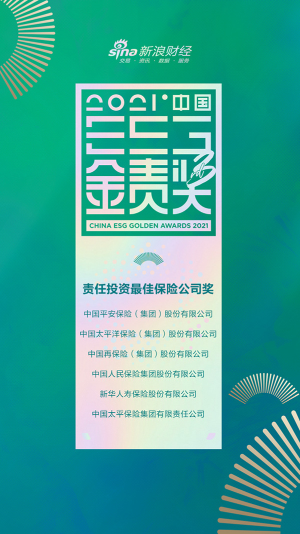 12月,新浪财经中国企业ESG“金责奖”获奖名单公布,经综合评定,新华保险荣获2021中国企业ESG“金责奖”——责任投资最佳保险公司奖,表明新华保险以实际行动践行ESG及责任投资理念受到肯定。