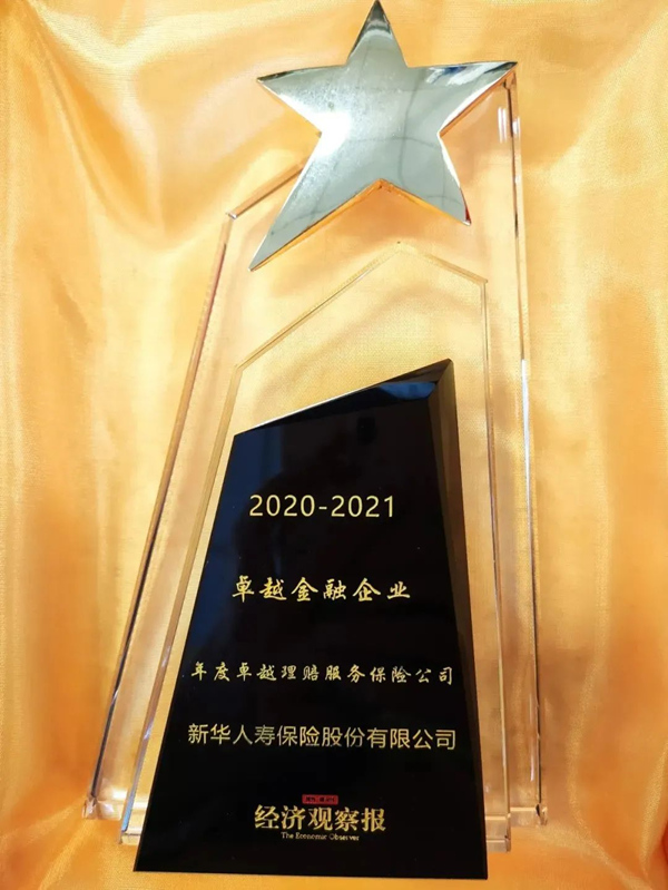 12月,在《经济观察报》主办的“2020-2021卓越金融企业”评选中新华保险获得“年度卓越理赔服务保险公司”奖。