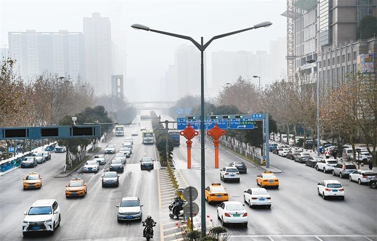 1月20日,车辆驶过西安街头。(记者 陶明 摄)