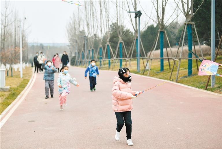1月20日,小朋友在浐灞生态区一处公园内玩耍。(记者 张博文 摄)