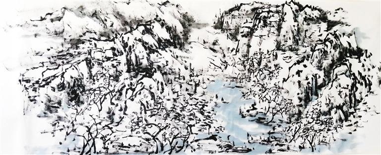 这幅作品用焦墨绘制出秦岭一角。 (李茂 作)