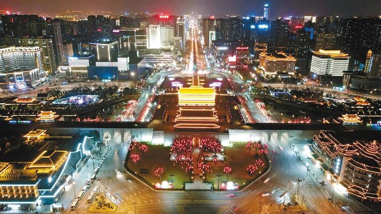 除夕夜,西安城内灯光璀璨,温馨祥和。(记者 谢伟 摄)