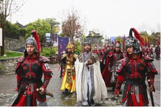 潮玩会活动期间,景区推出的三国群英贺春巡游让广大“三国迷”们大饱眼福。猛将张飞,手持丈八蛇矛威风凛凛;武圣关羽威震华夏,演绎千年不变的精魂;诸葛亮面如冠玉,头戴纶巾,身披鹤氅,飘飘然有神仙之感;大批蜀国士兵浩浩荡荡走近,浓浓的的三国历史文化气息扑面而来、震慑人心,一瞬间仿若穿越千年、重回烽烟三国,超强代入感为广大游客圆一场心醉已久的三国梦!