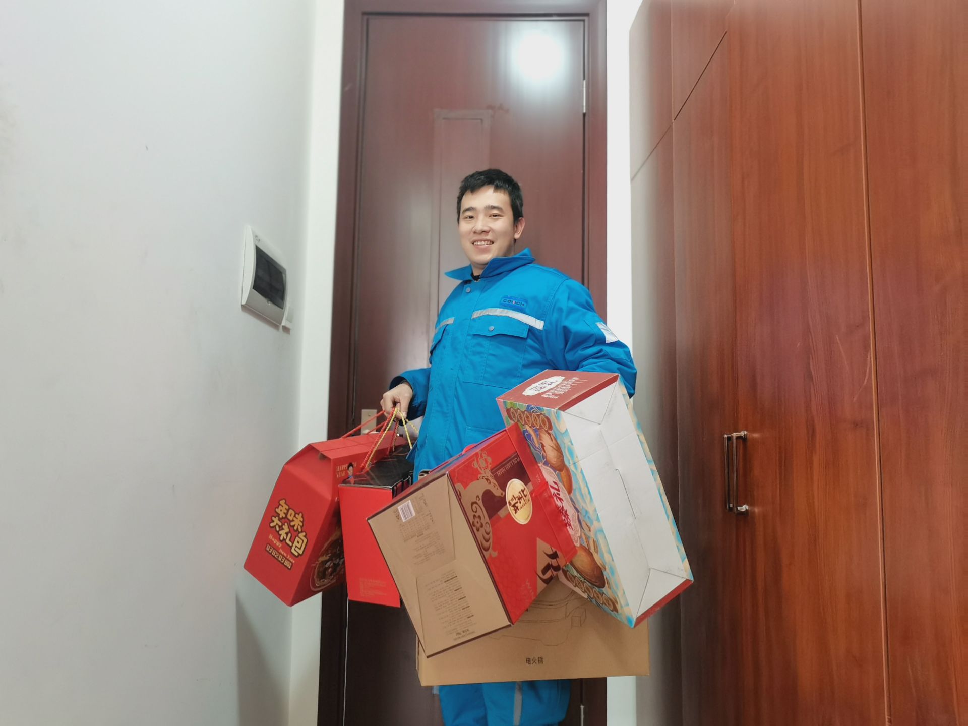 李根领到了公司发放的“年味大礼包”