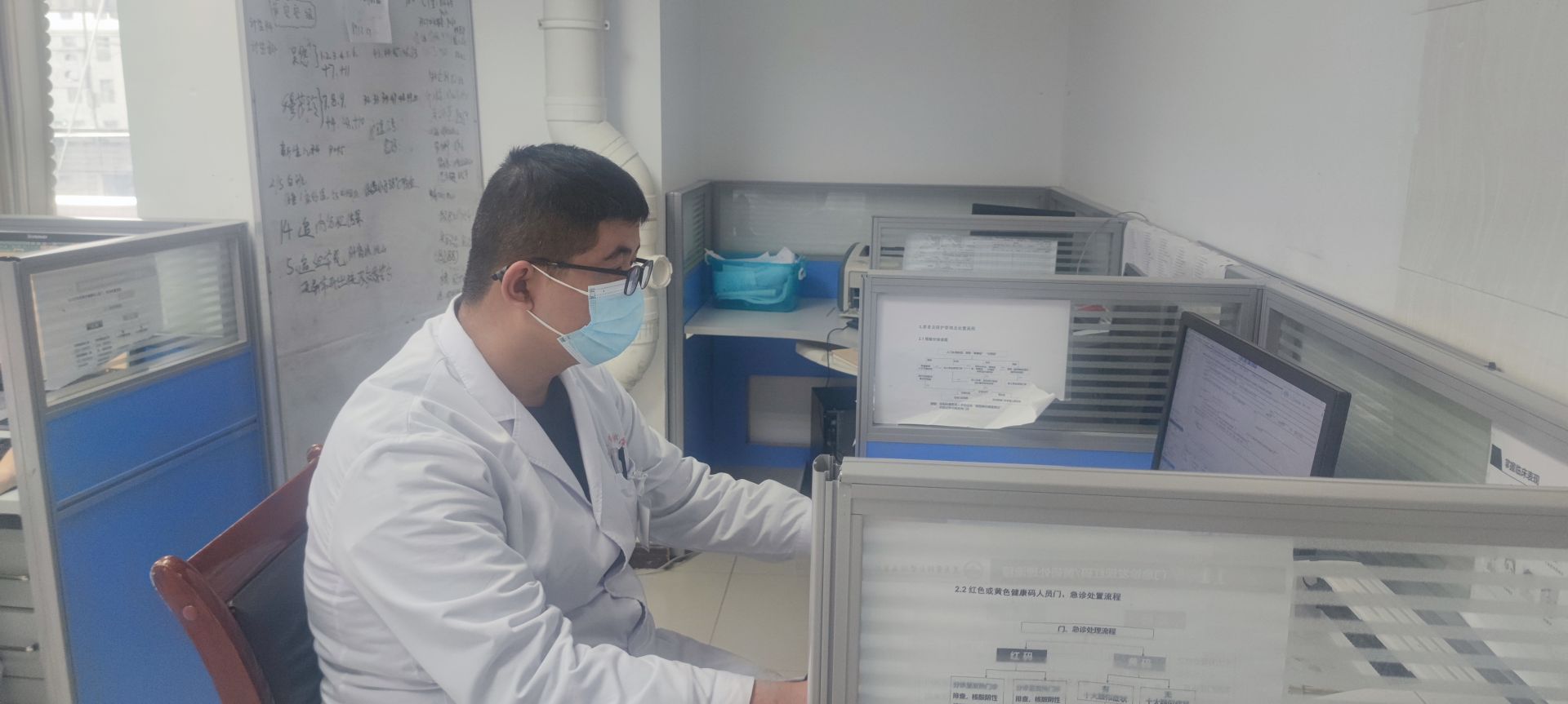 胡新立正在整理患者资料
