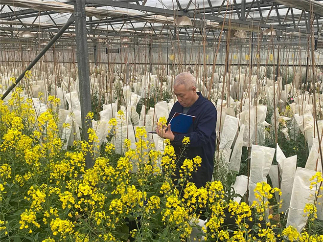 春节假期,陕西省杂交油菜研究中心油菜育种研究室主任董育红还在查看育种进展 供图 杨凌示范区管委会
