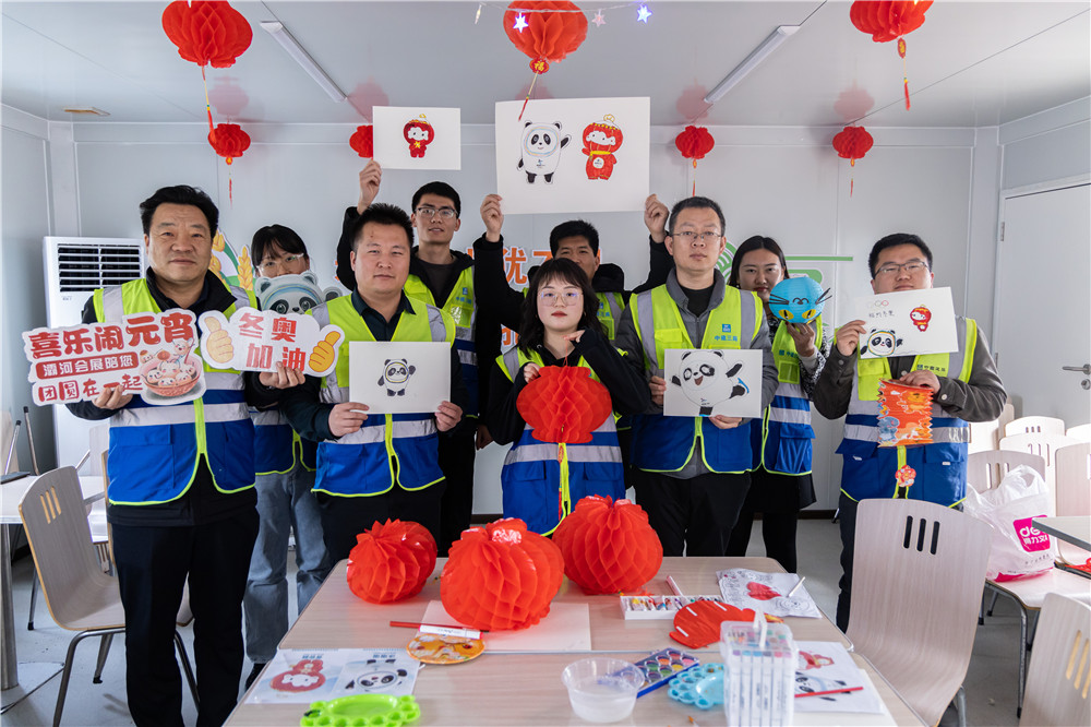活动现场,工友们一起挂花灯、猜灯谜,包元宵、品元宵,聊着家乡的故事,并一起观看冬奥会比赛。(王智超)