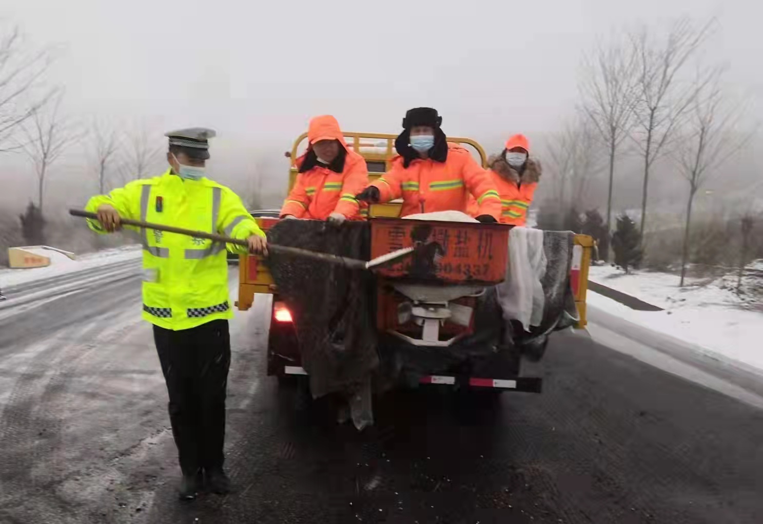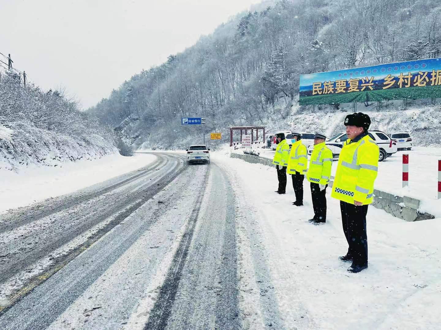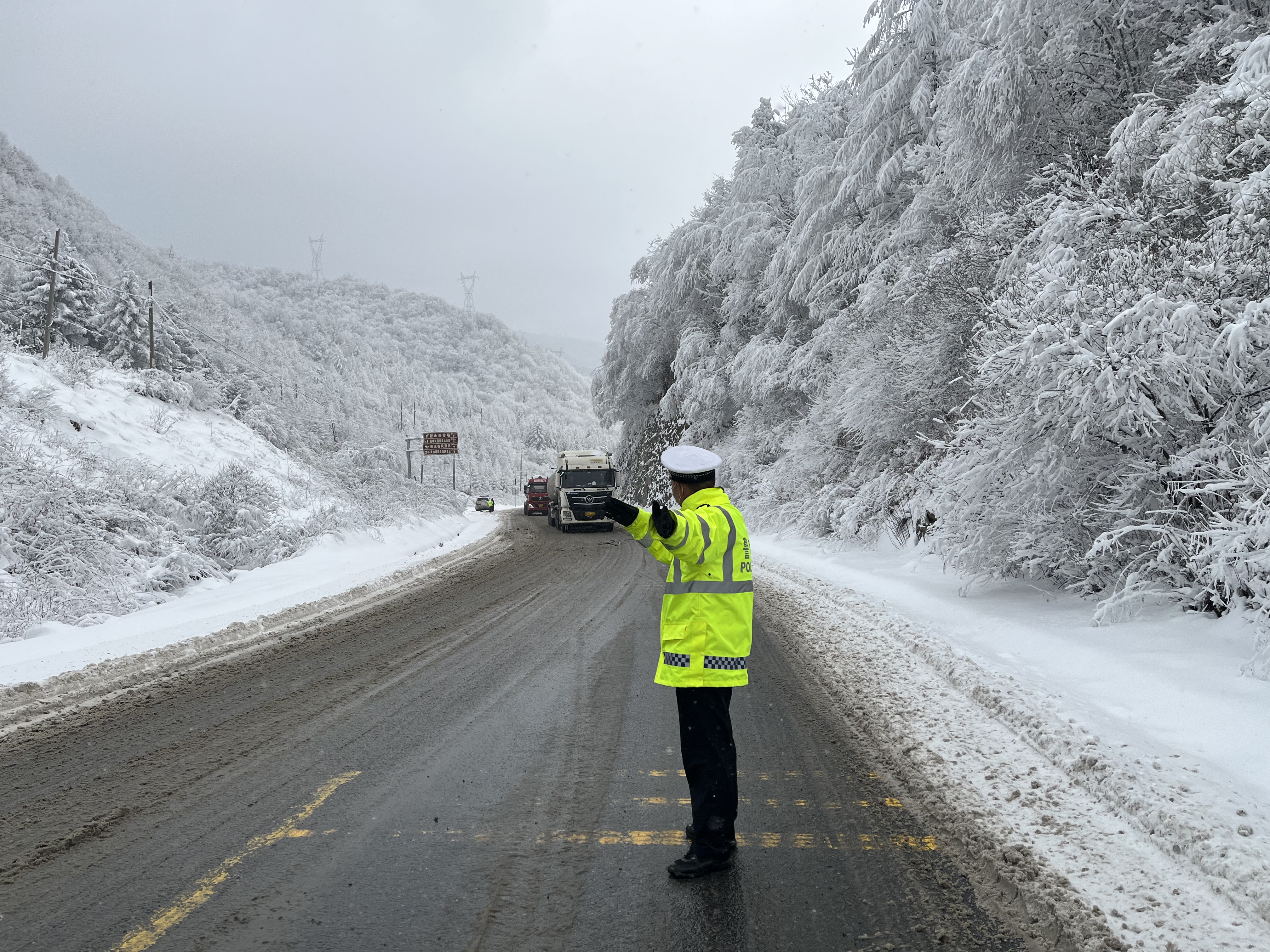 支队各大队在G85银昆高速、G244国道、S219省道等辖区重点路段加强巡逻值守,设置警示牌,临时管制三轴以上货车和六座以上客车。同时采取警车开启警灯带道引导社会车辆有序通行,通过喊话器、警灯警笛提醒过往车辆减速慢行,热情帮助受困车辆,及时清理因雪压段树枝等路障,并积极配合公路等部门开展扫雪除冰,消除安全隐患,及时通过微信微博等新媒体平台发布路况信息,方便群众出行。