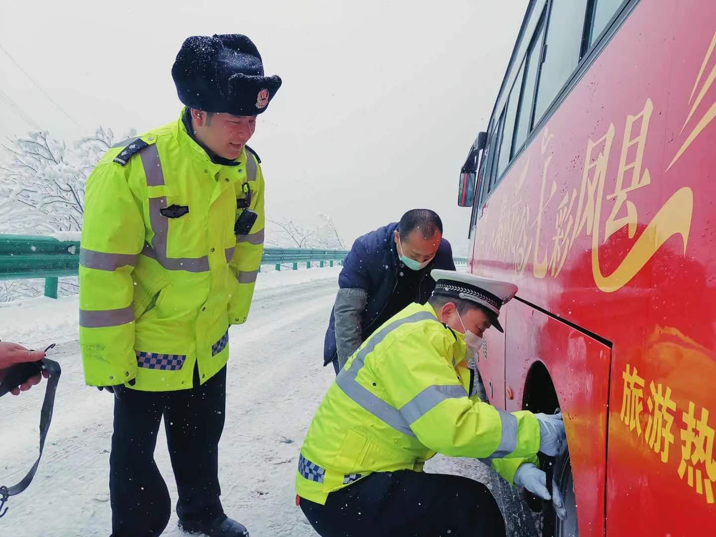 宝鸡交警提示:因降雪辖区部分高速公路和国省道临时交通管制,请及时关注路况信息。雨雪雾天气道路湿滑、能见度低且通行条件差,请过往车辆驾驶人谨慎慢行,谨遵"减速、控拒、亮尾"安全三宝,途经冰雪路面需加挂防滑链,降低车速、控制车距、确保安全出行。