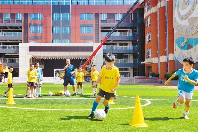 铁五小学的学生进行足球训练 (资料图片)记者 郝钟毓 摄