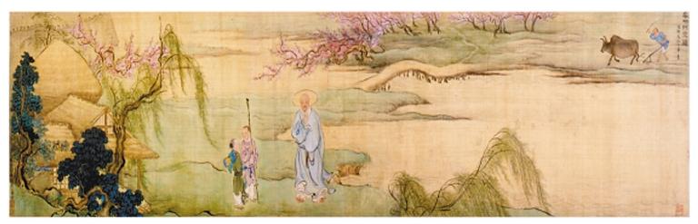 春风荡荡,布谷声声,正所谓“一年之计在于春”。古往今来,春耕春播不仅为农家所器重,也受到众多画家的关注,成为其热衷表现的题材。桃红柳绿、春水潺潺,清人禹之鼎的《春耕草堂图》,使我们在感受春日之美的同时,也能一睹古人赶牛耕作、农事大忙的景象。该图手卷,画心纵高30.4厘米、横128.7厘米,现存湖南博物馆。