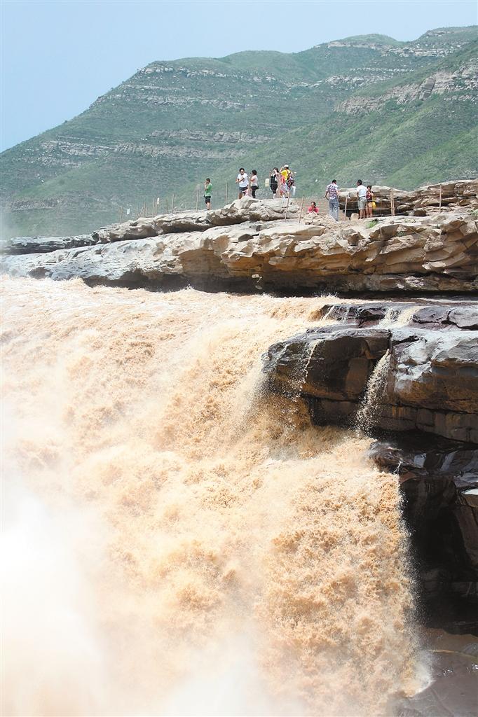 到了这里,之前500多米宽的河面收拢成50多米的河床,黄河像万里赴戎机的壮士,突然收扎腰身,汇聚全部力量以便“关山度若飞”——只见,后浪推挤着前浪,一浪高过一浪,毫不犹豫地跳将下去,“嗵”地跳入壶底,又“轰隆隆”地腾跃而起,卷起雷霆万钧,像潜伏深渊的蛟龙被惹恼,怒不可遏翻越龙门,扬长而去……