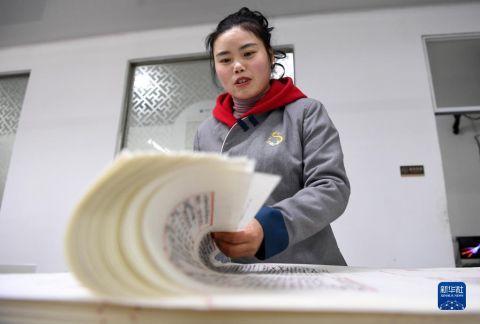 近年来,作为宣纸诞生地的安徽省宣城市泾县丁家桥镇,依托当地宣纸产业优势,通过“宣纸+古籍装帧”的模式,将古籍善本原样复制为宣纸线装书,不断丰富宣纸文化产品。