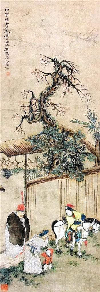 这幅清代的《木兰图》,描绘了花木兰“旦辞爷娘去”的告别场面。