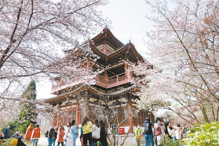 游客在青龙寺景区观赏樱花(资料照片) 记者 谢伟 摄
