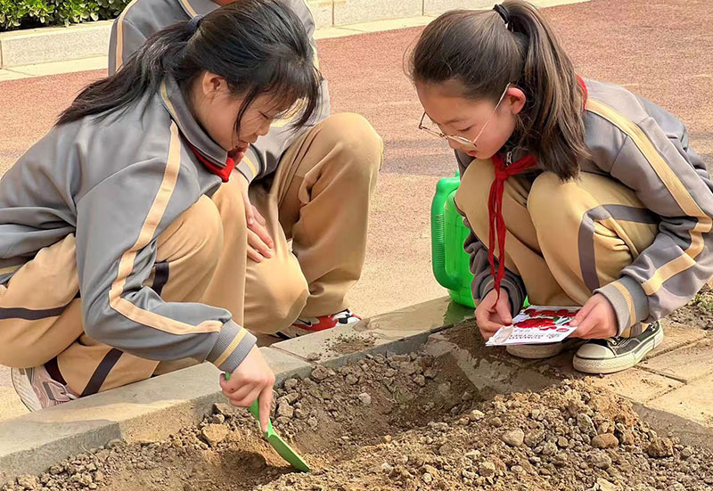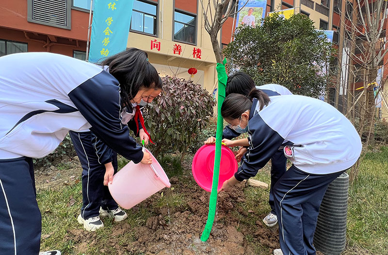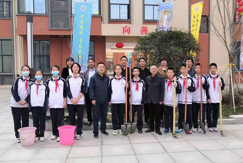西安市莲湖第一学校开展“播种绿色•收获未来——爱绿护绿植绿,共建绿色校园”主题实践活动。党支部书记、校长李冰带领行政领导和学生们一起参与到植树活动中来,为校园种下一片新绿,创建绿色美丽校园。希望全体师生一起携手践行节约环保绿色低碳新风尚。