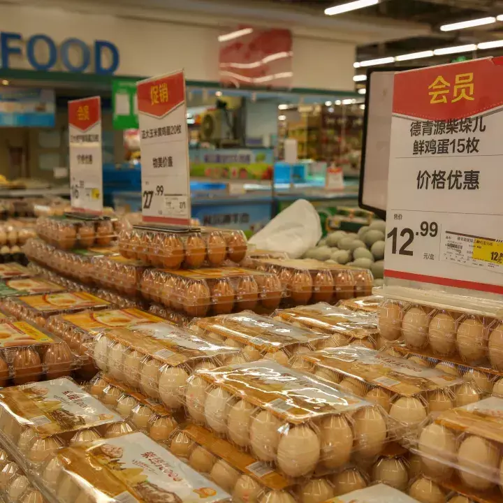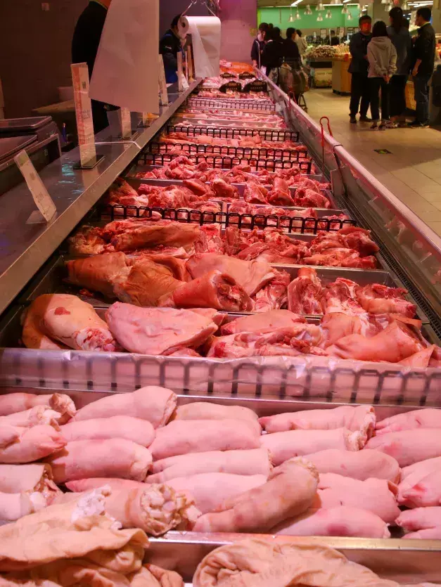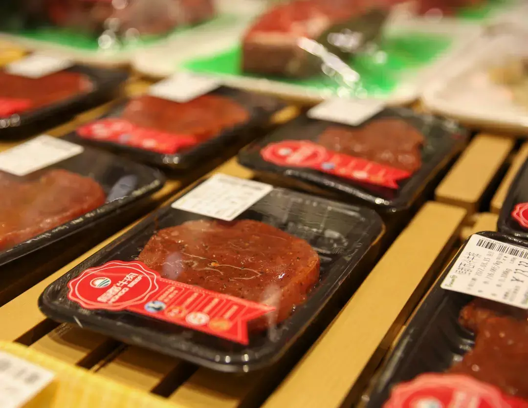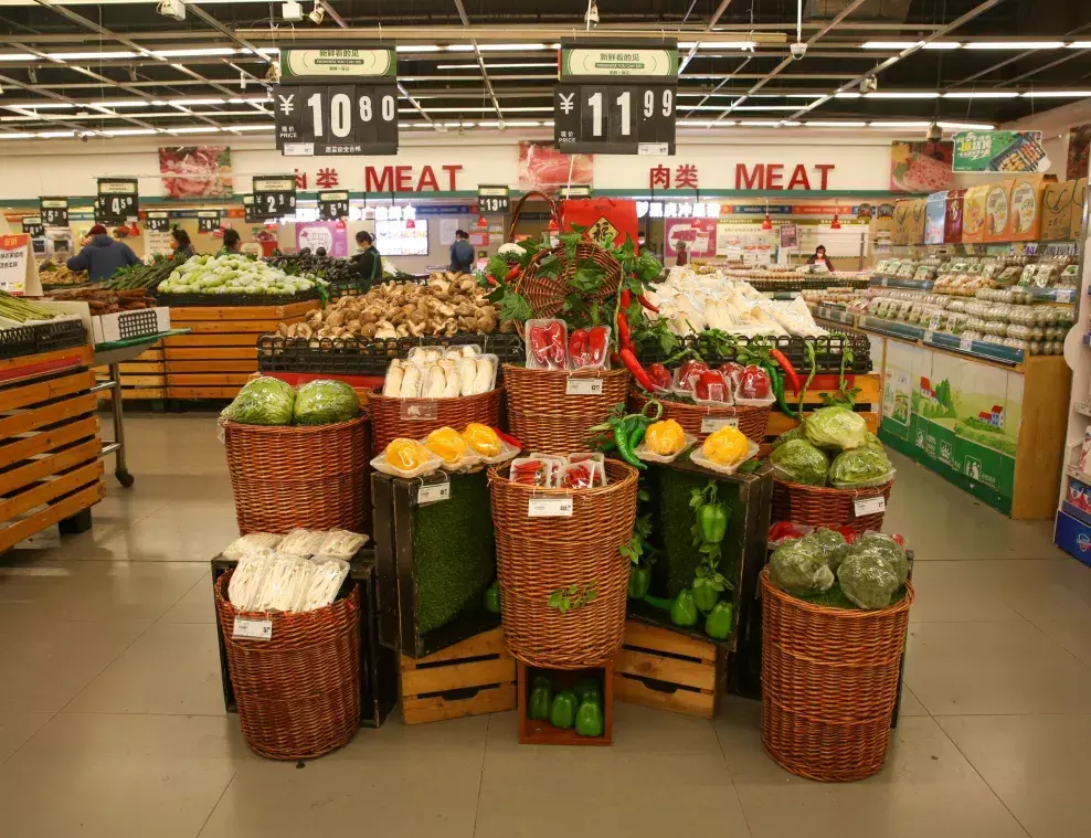 居民正在购买肉和菜,货源供应充足