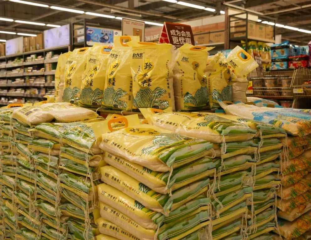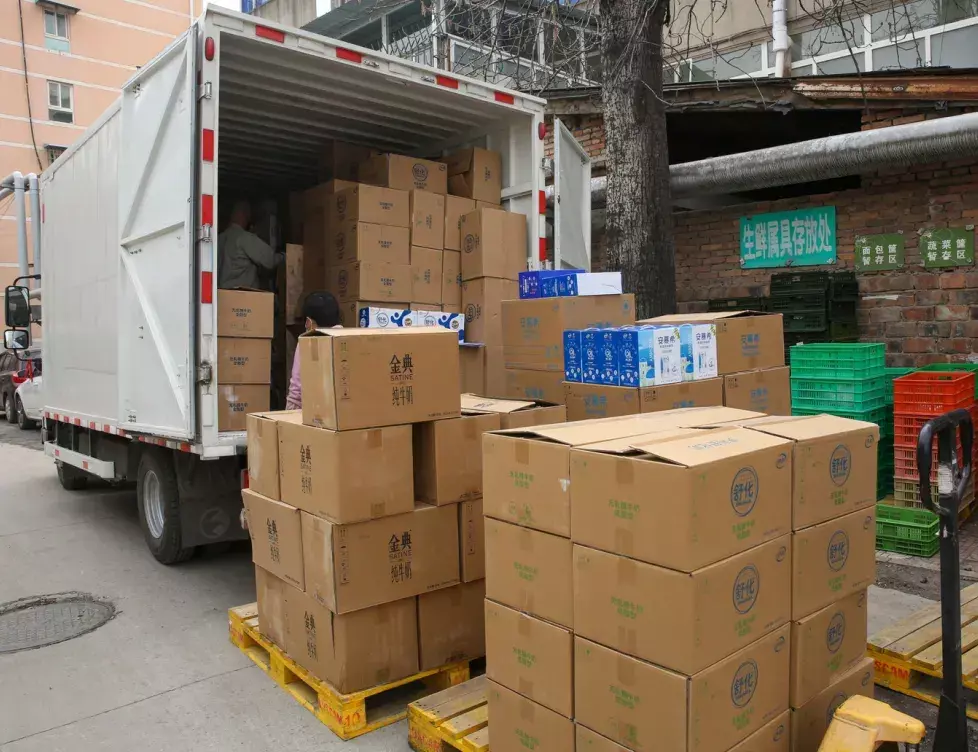 物资整齐地摆放在货架上种类齐全