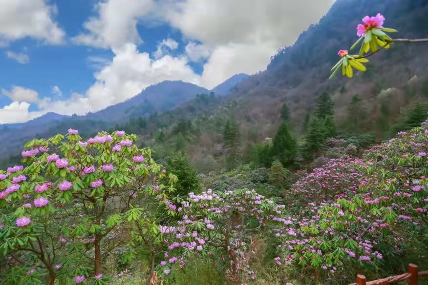 身处杜鹃岭观花点,能欣赏到具有极强地域特色的花海盛景。美容杜鹃、秀雅杜鹃和满山红杜鹃等秦岭高山地带特有的阔叶杜鹃遍布山野,铺陈绚烂,景观大美。随手一拍,绝对就拥有了称霸朋友圈的春日花海图鉴NO.1。