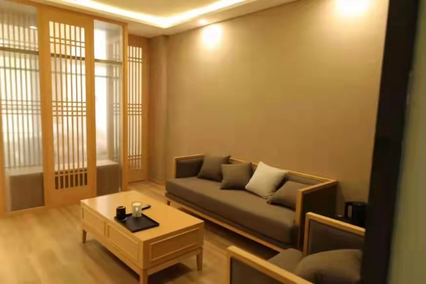从山间返程,聆听着潺潺河水声,走过植被护佑的小路,抵达骊水山庄。推窗见星,闭门闻花香,说的正是这里。山庄是按四星级按标准设计的一座院落,位于杜鹃山庄内,各式各样的特色客房满足着不同宾客的需求,而“观星房”却是其中最为浪漫的存在。原木色调看上去极为自然,淡绿色的床品和内饰则呼应着木王的生机勃勃,精心设计的木质格挡带来风格与空间上的自由,大大的浴缸和浴室则令人在放松之余,多了与自然相处的空间和时机。阵阵清风拂过,花香涌入房间,推开窗,星空随即出现,望着屋外的一切,还有什么比此刻更加美好呢?如果睡着了,一定会有颗星星落在梦中,讲述英雄穆王与杜鹃仙子的故事吧,毕竟,这里原本就是浪漫异常的地方!