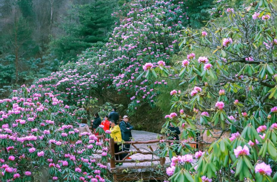 旅行,不仅能让人得到放松,愉悦的旅行体验还会在之后很长的一段时间里,治愈温暖人的心灵。为了更好地让人们体验到木王高山杜鹃花海的魅力,景区在最佳观花点处都设置了平台,包括:探花桥、问花岭和揽花台。