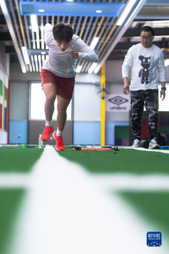 4月6日,王霜在体能康复训练中。