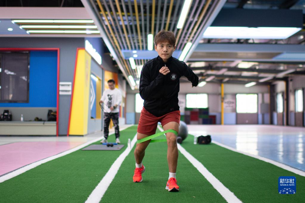近日,在位于武汉的湖北省足球运动管理中心常青花园训练基地,四次获得中国女子金球奖的女足国脚王霜在进行体能康复训练,积极备战将于9月开幕的杭州亚运会。