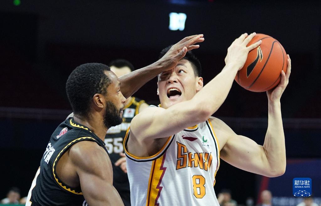 4月9日,山西汾酒股份队球员张宁(右)在比赛中进攻。