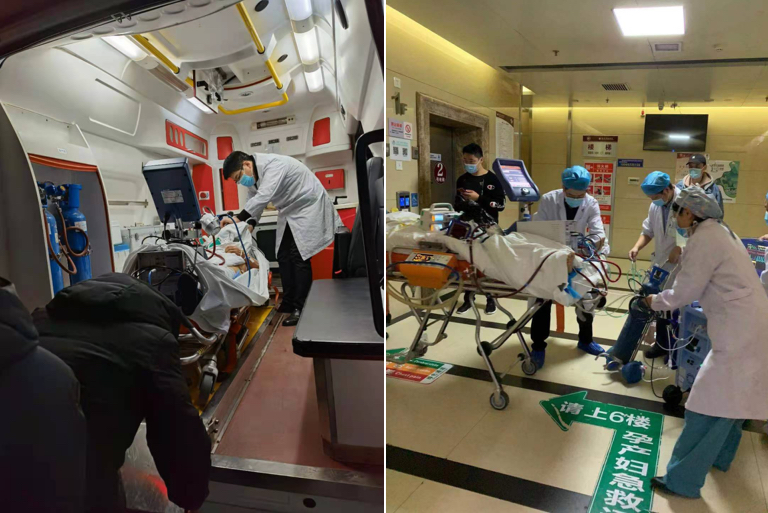 哪里有急救,哪里就有这支与死神较量的队伍。2021年6月的一个深夜,云南大理市某医院ICU一名37岁的重症心肌炎患者病情危重,呼吸循环衰竭,急需ECMO救治,家属千里求援。ECMO团队郭锋伟、钟亮、刘锋锋三位青年医生立刻携带急救设备,搭乘飞机又换乘高铁,跨越1700多公里,成功实施西北地区首例ECMO辅助的重症患者固定翼飞机转运。
