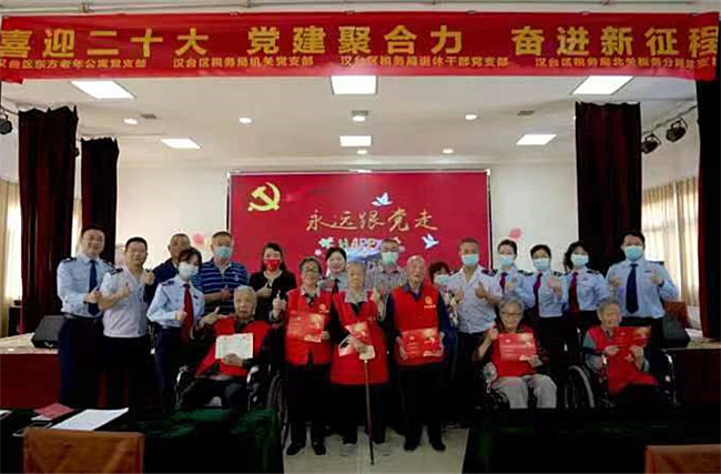 汉台区税务局机关党支部书记何明星介绍了该局党建工作开展情况及“头雁领航护税程”党建品牌,并希望与东方老年公寓党支部持续加强沟通联系,常态化开展党内政治生活。随后,向东方老年公寓党支部颁发了“头雁党组织”证书,双方就后期联建共建事项达成共识。东方老年公寓党支部表示,将一如既往发挥“头雁党组织”辐射带动作用,共同构建民营企业党建联盟,推动全区民营企业党建工作不断走向深入。汉台区税务局机关党支部青年党员韦兴中向东方老年公寓的退休老党员们宣讲了有关老人赡养、养老服务等税收优惠政策。