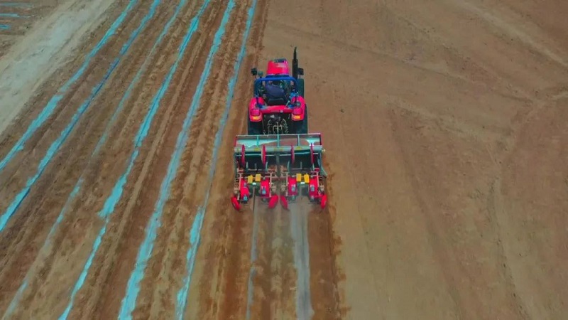 这几天,正是旱作玉米的耕种期。孤山镇岳家寨村的千亩旱作节水农业基地里,一台台大型玉米种植机在平整的土地上来回穿梭。随着机具深入土壤中,籽种、肥料和地膜一次性到位,既省时又省力。完成种植的玉米地,在阳光的照耀下,像一条条白丝带闪闪发光,蔚为壮观。岳如小是岳家寨村的脱贫户,为了让他的收入更稳定,村集体经济合作社让他农忙时在合作社打工。