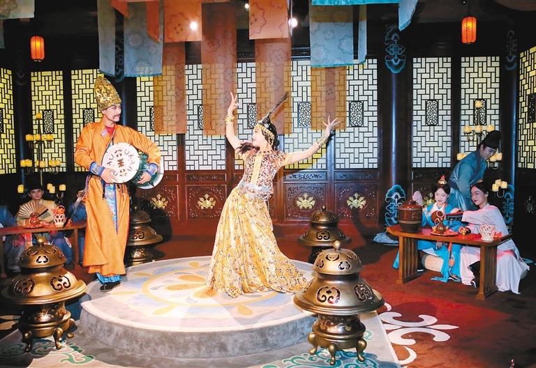 据了解,曲江文旅不断探索文旅融合与创新的全新模式,近期在大唐芙蓉园推出大型沉浸式互动演出《寻梦·芙蓉里》。《寻梦·芙蓉里》演出策划黄垚告诉记者,“该演出以大唐芙蓉园仕女馆为背景,将唐朝女性文化与绘画艺术、美学艺术、诗歌艺术、礼仪文化等特征相融合,希望为观众提供一个深入解读唐代女性文化的机遇。薛涛八九岁通诗律,与鱼玄机、李冶、刘采春并称唐代四大女诗人,流传诗作90余首。所以我们特意在《寻梦·芙蓉里》的演出中,加入了薛涛和酒肆内登徒子斗诗的环节,因为这一角色将大唐女性文化与诗歌文化完美融合演艺,并通过这一充满意趣的演艺形式更加突显女诗人薛涛的才气,让观众对唐朝女性文化有更深的认知。”