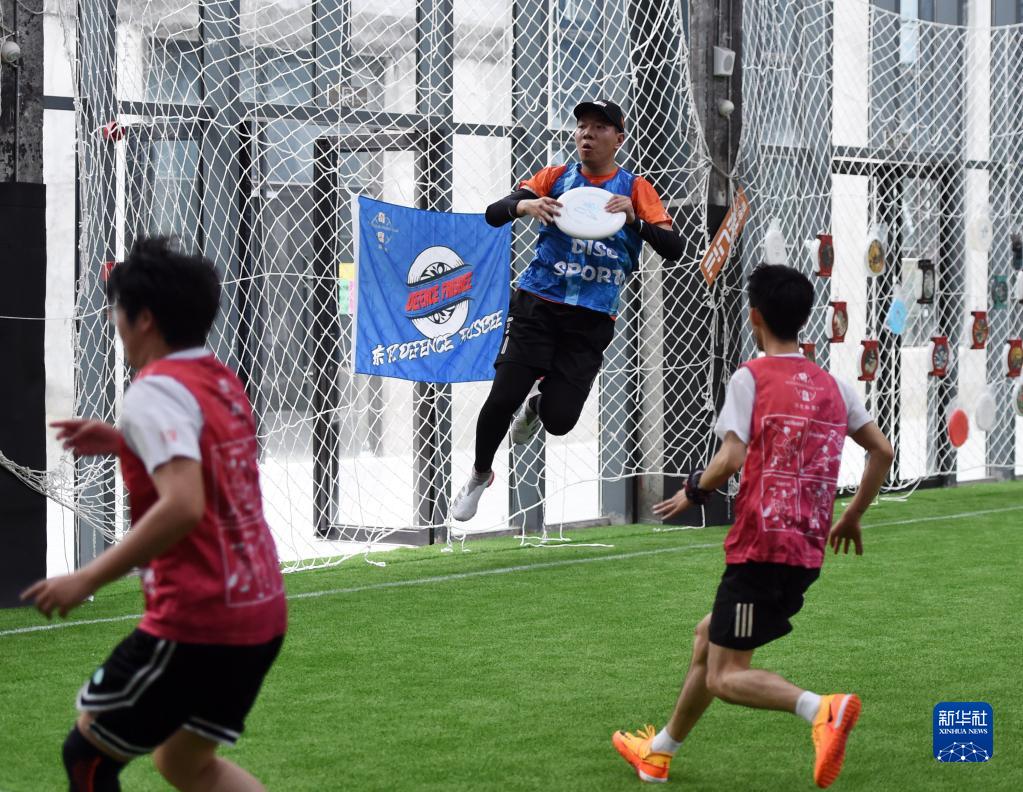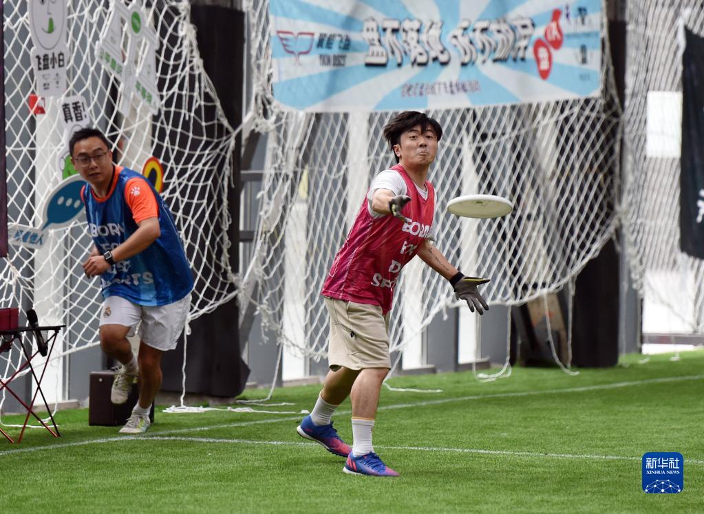 5月28日,市民在合肥市一家体育场馆内进行飞盘比赛。新华社记者 周牧 摄