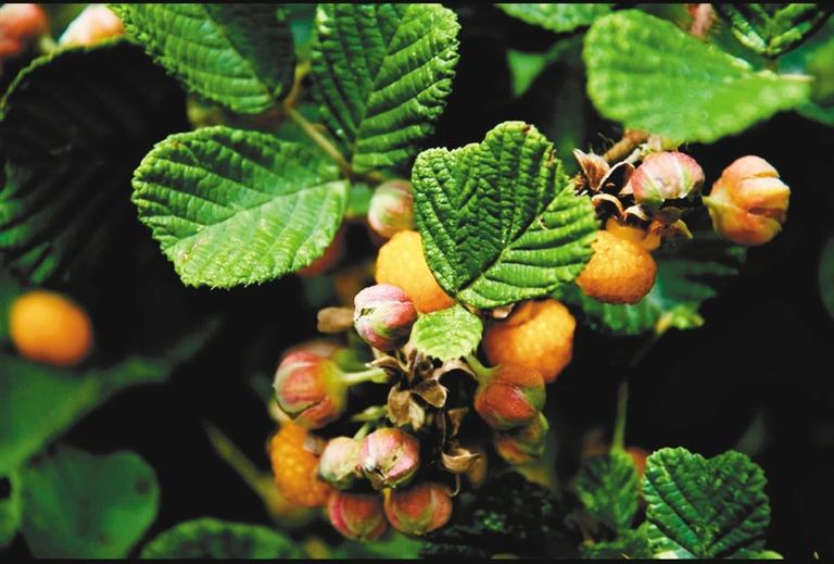 锁莓又称泡果,这是金黄色的锁莓,即将成熟。