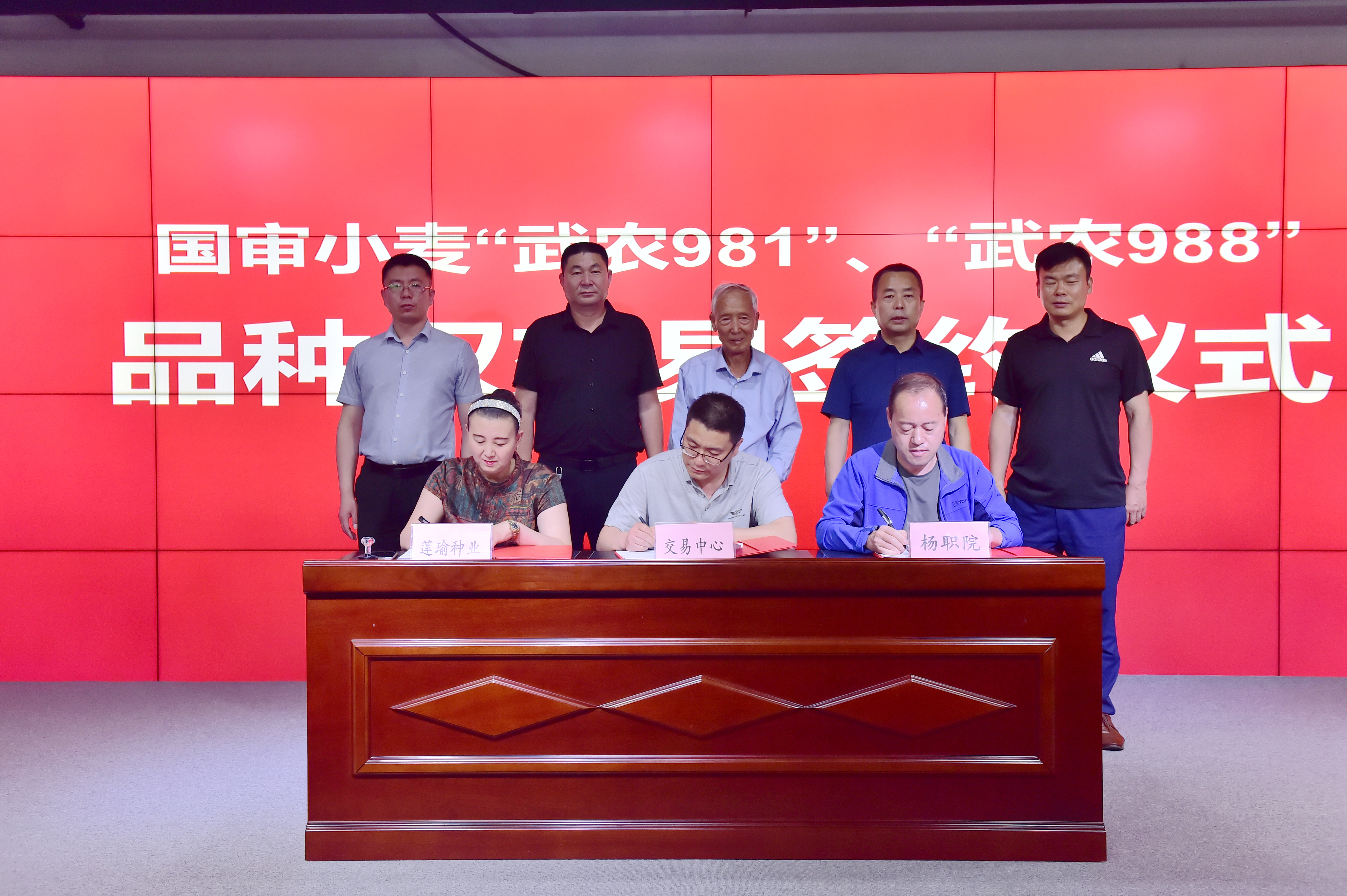 仪式上,冯旭、宋宇和付井莲共同签订了“武农981”和“武农988”小麦品种权实施许可协议。许可协议期限为一年,签约金额100万元,主要是江苏和安徽小麦主产区的生产、包装、推广和销售权许可。