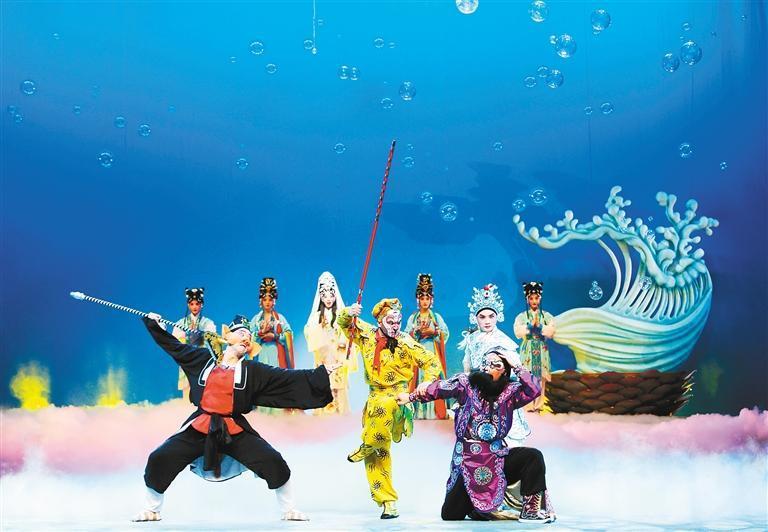 在介绍剧目亮点时,史挺说:“孙悟空是最累的角色,他是一个从头到尾贯穿的角色,整本戏就像一串糖葫芦,孙悟空是那根糖葫芦签子,单场每一场都是一个糖葫芦,拥有不同的滋味。孙悟空与小白龙、猪八戒、沙僧等各个主要角色之间的配合,都有各自的武戏技巧安排,这些给观众带来了精彩不间断的观剧感受。” 孙悟空的扮演者张煜说,作为一名年轻演员,有机会参与到这个戏的主演并饰演孙悟空,对他来说是很大的荣幸,也是很大的挑战。张煜攻武生、须生行当,第一次接触“猴戏”时有些陌生。后来在排练中经过导演、老师们一遍遍的启发、演示,逐渐熟练掌握了“猴戏”的高难度技巧,最终与剧组的演员伙伴们一道完成了精彩的演出。(记者 张静 /文 记者 尚洪涛/图)