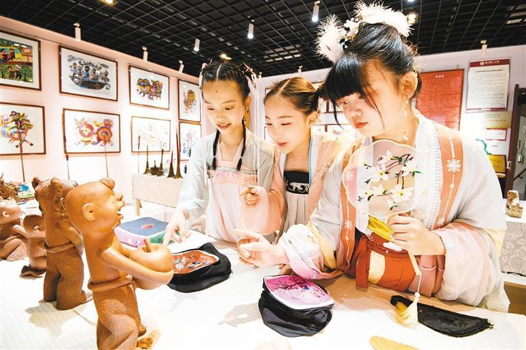 国际博物馆日,学生们在非遗展馆参观学习。 (记者 郝钟毓 摄 资料图片)