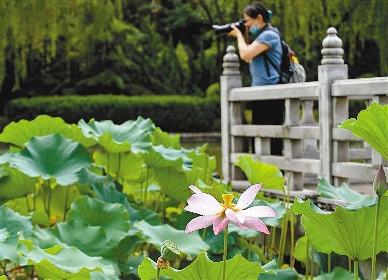 市民赏荷拍照 首席记者 王健 实习生 雷云云 摄