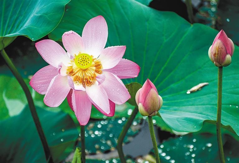 荷花竞相开放,美景如画。记者 雷伟东 摄