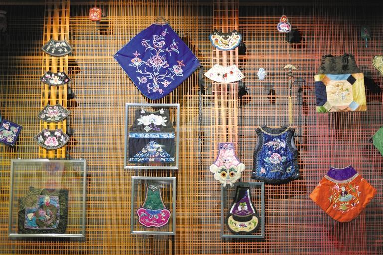 陕北民俗博物馆里,各式各样的陕北刺绣色泽鲜艳,制作精美。