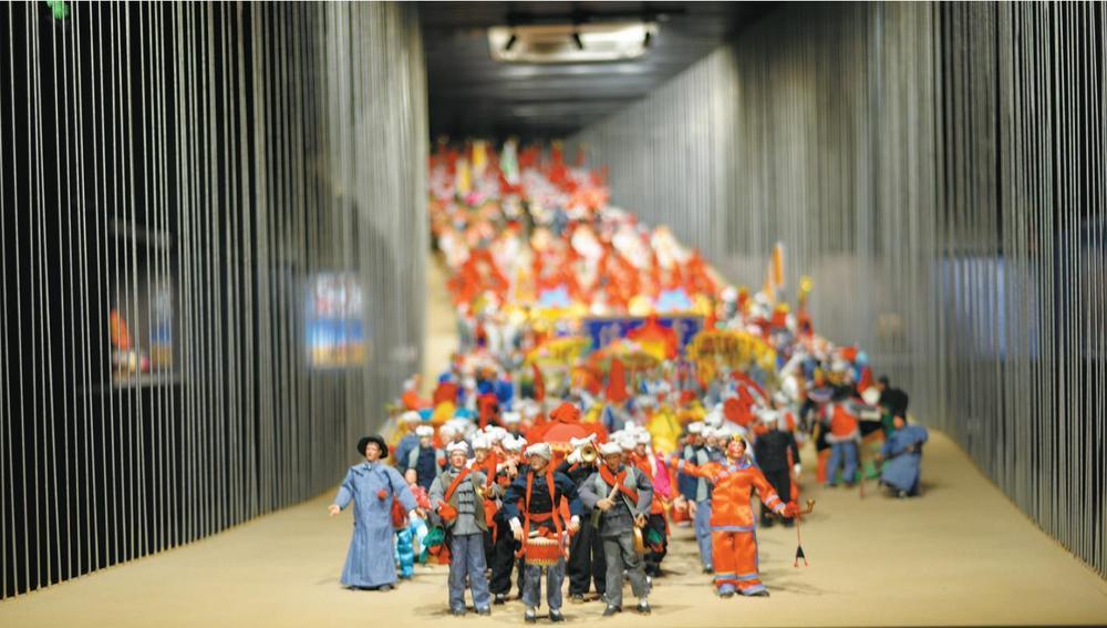 陕北民俗博物馆里的标志性艺术展台“陕北民俗飘带”,展示着陕北文化艺术中的各类民俗场景。