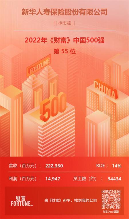 7月12日晚,财富中文网2022年《财富》中国500强排行榜发布。新华保险连续11年入榜,排名第55位。榜单期内显示,新华保险2021年营业收入达2,223.8亿元。