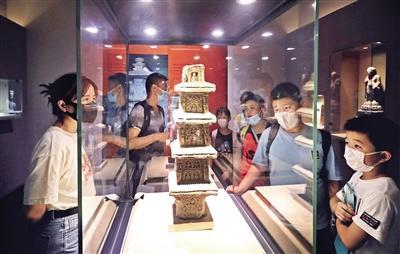 7月14日,西安一夏令营老师带着孩子们在西安博物院参观学习,孩子们看文物、听历史、长知识、增见识,在寓教于乐中欢度暑假。(记者王晓峰摄)