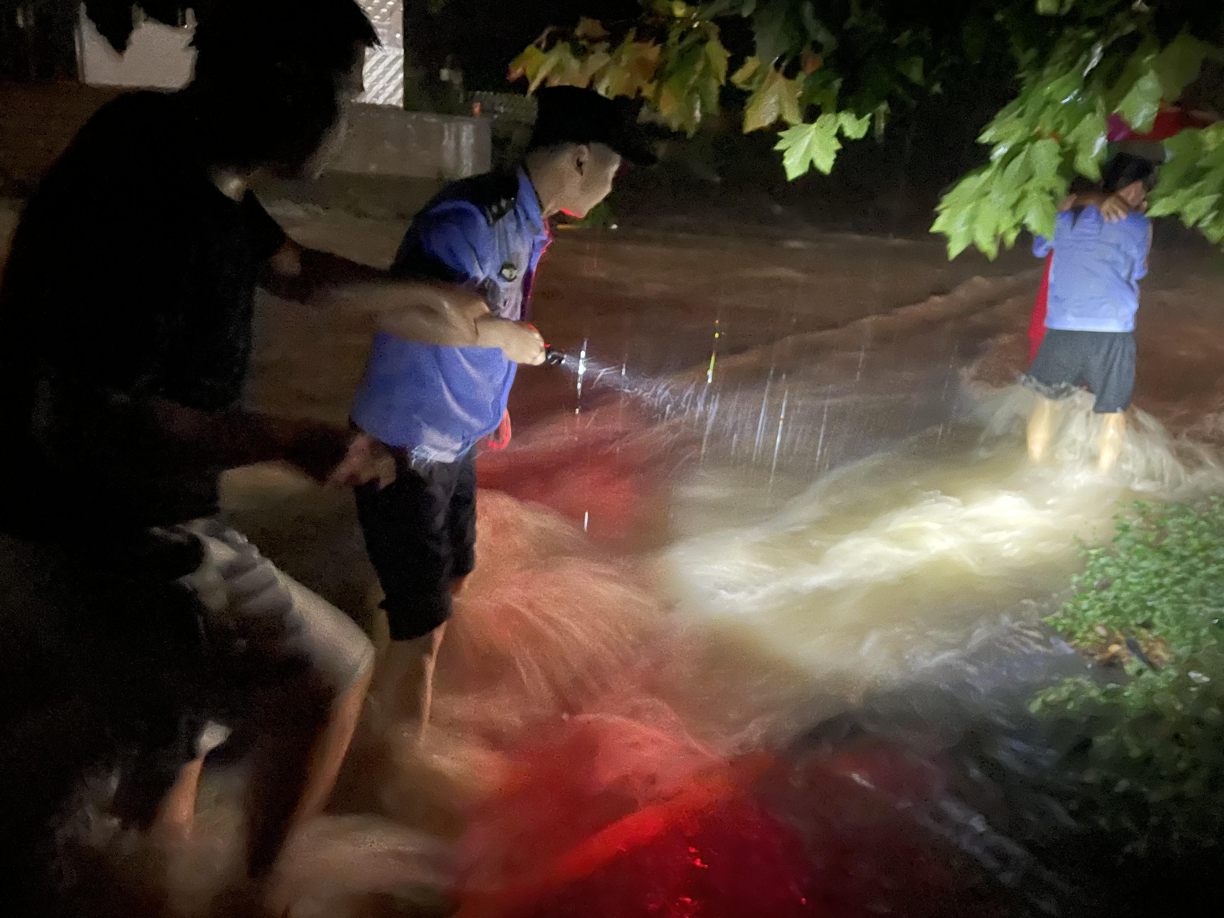 救援结束后,民警查找积水原因时发现,下水井盖被大量雨水冲开,路旁的排水井也被堵,于是合力将井盖恢复并对下水井进行疏通,直到积水渐渐排空,安全隐患彻底消除,民警才放心离开。(梅园)