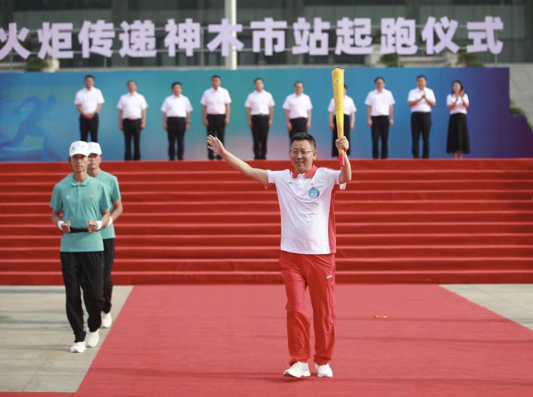 省运圣火耀麟州,各界精英展风采。7月14日上午,陕西省第十七届运动会的昭昭圣火从驼城脚下来到窟野河畔,开启了省十七运圣火在第三站神木市的传递。榆林市委常委、神木市委书记杨成林参加起跑仪式。