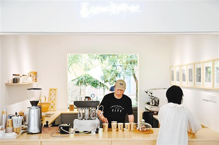咖啡师沈洪义在蔡家坡艺术村长之家为顾客制作咖啡。