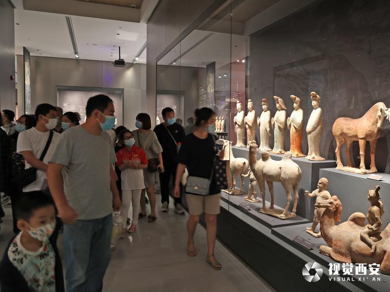 7月16日,虽然阴雨连绵,但在陕西考古博物馆内依然有大批游人前来参观,大家通过网上提前预约免费门票,欣赏陕西考古出土的精美文物,增进了解考古知识,感受陕西悠久的历史文化魅力。(西安报业全媒体记者 谢伟 摄)
