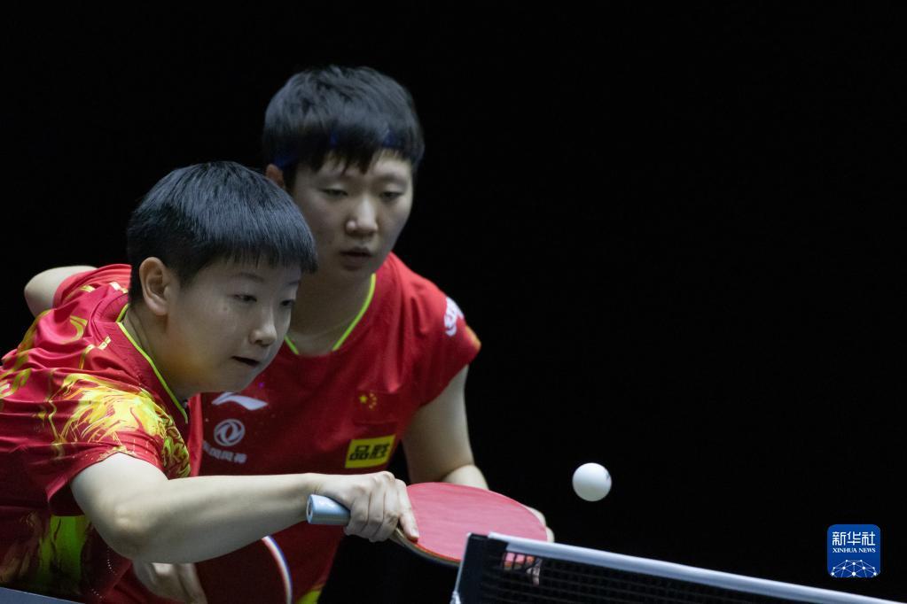 7月17日,孙颖莎(左)/王曼昱在比赛中。新华社发(弗尔季·奥蒂洛摄)