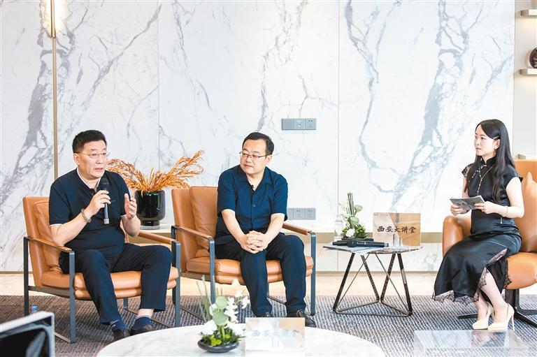 7月20日,由西安报业传媒集团(西安日报社)主办,陕西广播电视台影视频道、西安大讲堂协办,西安万达one承办的《木塔之上 传奇所在》文化论坛在万达·天鼎项目中心举行。论坛特别邀请了陕西师范大学历史文化学院教授、央视《百家讲坛》主讲人于赓哲和万达投资集团西安城市公司总经理、万达·天鼎总建造师高小帆先生,共同穿越千年揭开木塔寺的前世今生。论坛通过《西安晚报》视频号线上同步直播,论坛直播间内气氛非常活跃,短短一个小时吸引了大批文化爱好者观看、互动,近三万粉丝在直播间里驻足,畅谈长安过往,为嘉宾们的妙语连珠不断点赞。
