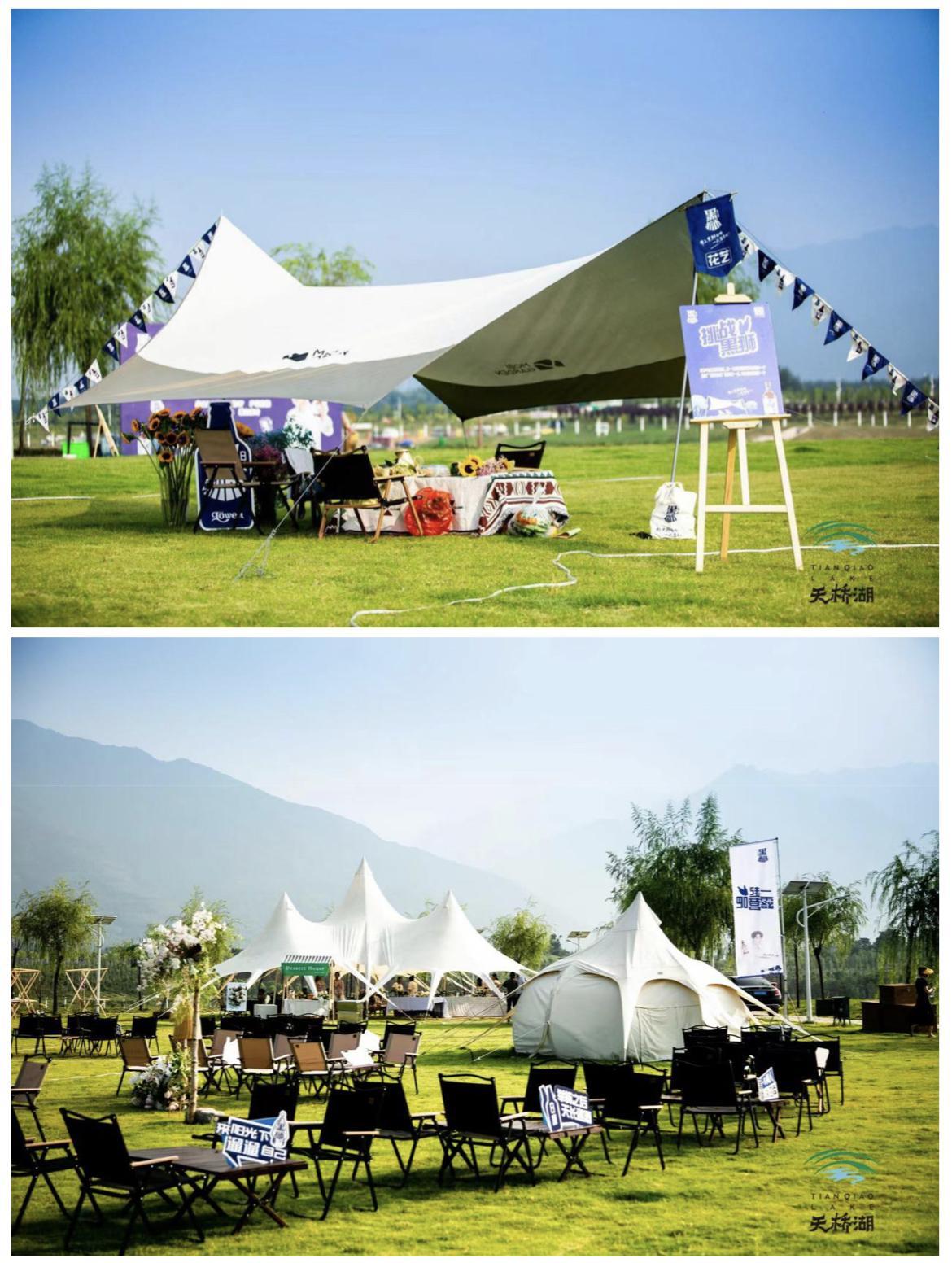 本次活动主要围绕户外运动、美食市集、环湖音乐会、亲子露营四大板块,在天桥湖国际生态区开展主题系列活动,包括露营+汽车尾箱市集、露营+电影、露营+音乐、露营+美食、露营+运动等。天桥湖国际露营生活节将持续开展至8月底,浪漫热气球、动力三角翼、水上摩托艇、环湖星光舞台视听音乐会、还可以观赏到国际风筝大赛获奖的巨型风筝的展演,缤纷多彩的各项活动将为全区市民带来一场史无前例的露营盛宴。